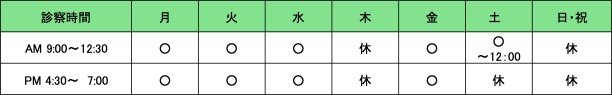 ・予約制ではありませんので、お越しいただいて準備ができた順番に診察させていただきます。